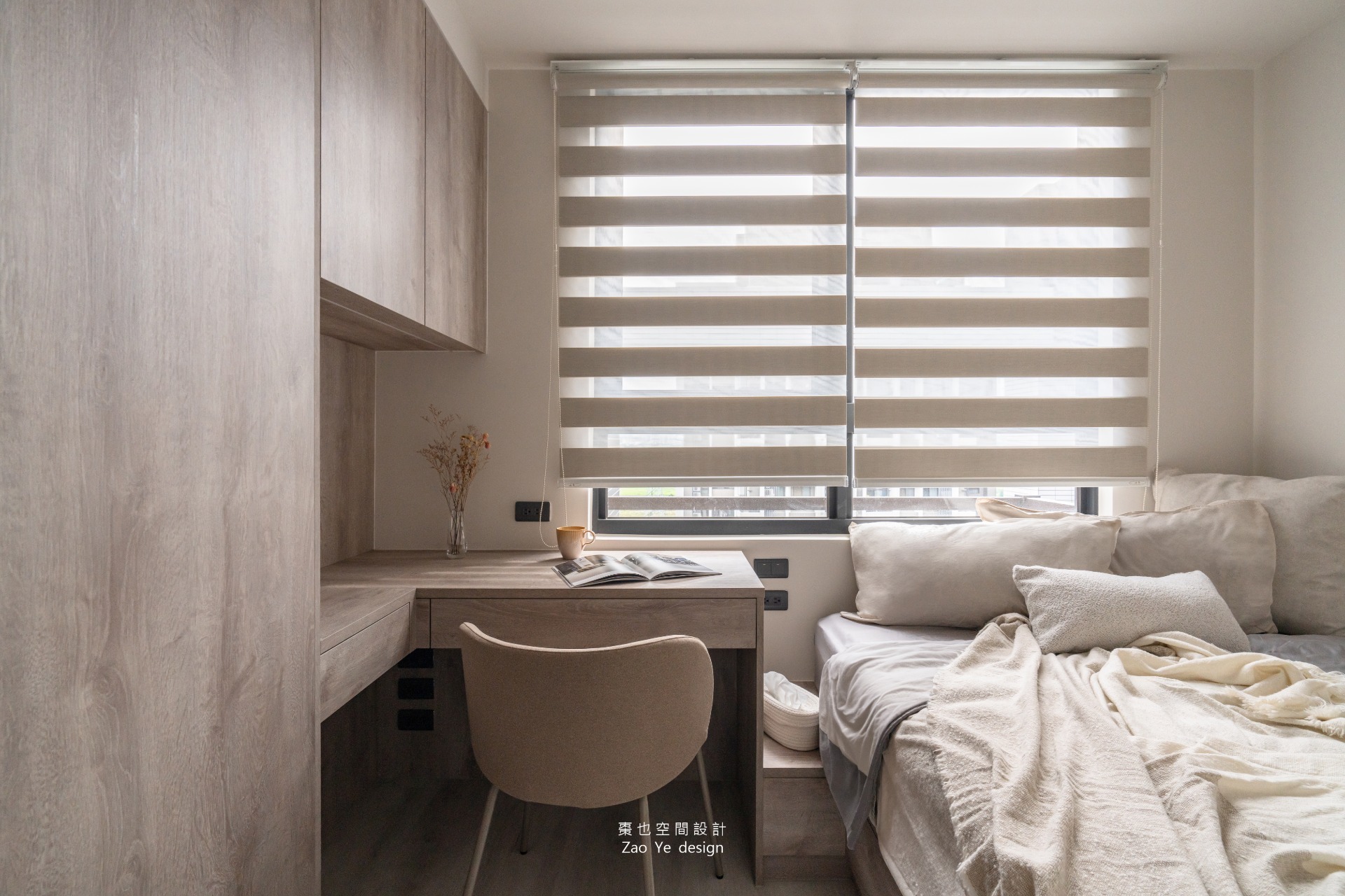 另一間則是客房兼書房空間,提供屋主的親朋好友來到家中能夠地住上一晚,平時亦是屋主使用電腦的空間。